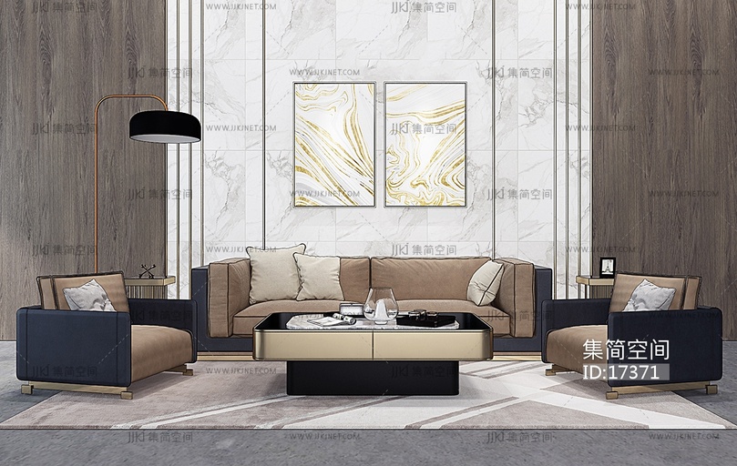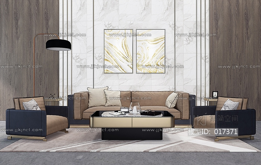 H07-0122现代沙发茶几组合客厅 3d模型下载 [模型ID:17371]