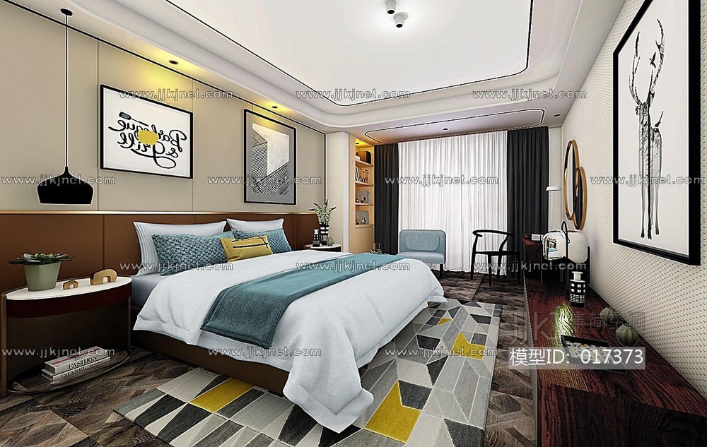H09-0122现代卧室 3d模型下载 [模型ID:17373]