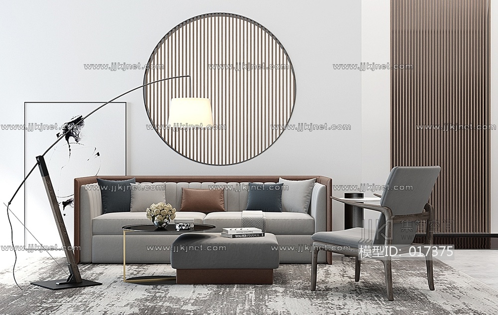 H11-0122新中式沙发茶几椅子组合 3d模型下载 [模型ID:17375]