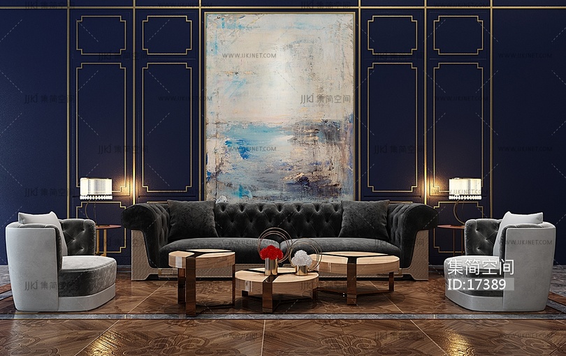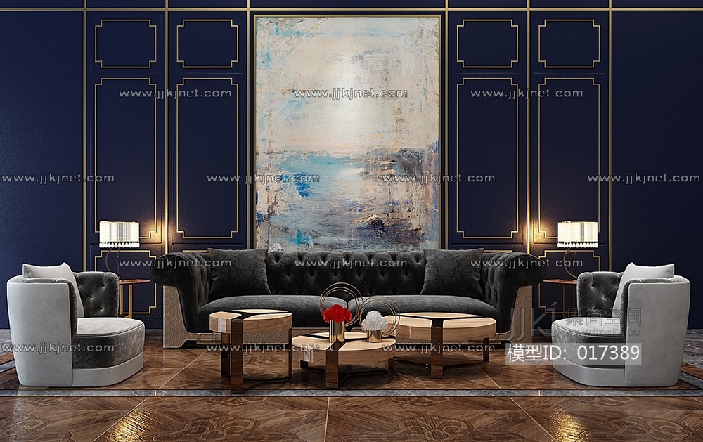 H07-0123新古典欧式沙发茶几组合 3d模型下载 [模型ID:17389]