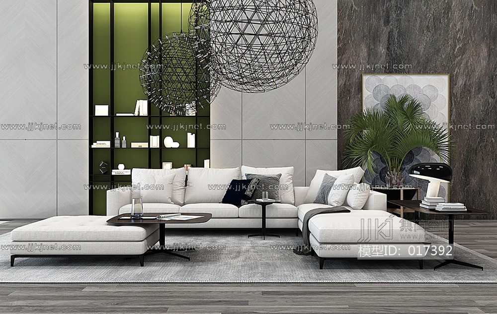 H10-0123米洛提 Minotti 现代沙发茶几台灯吊灯组合 3d模型下载 [模型ID:17392]