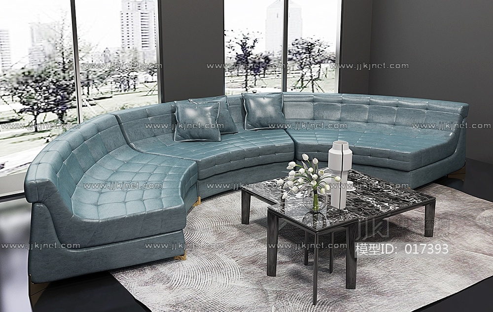 现代布艺沙发茶几组合3d模型下载