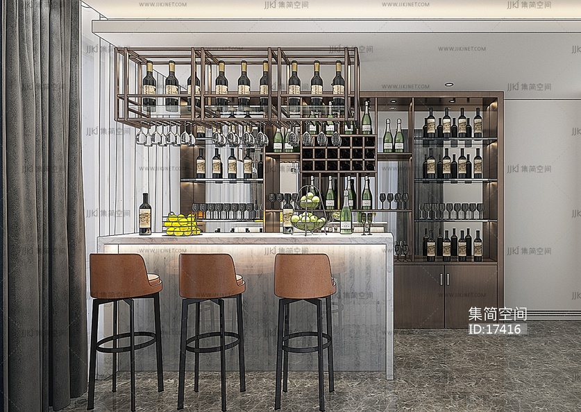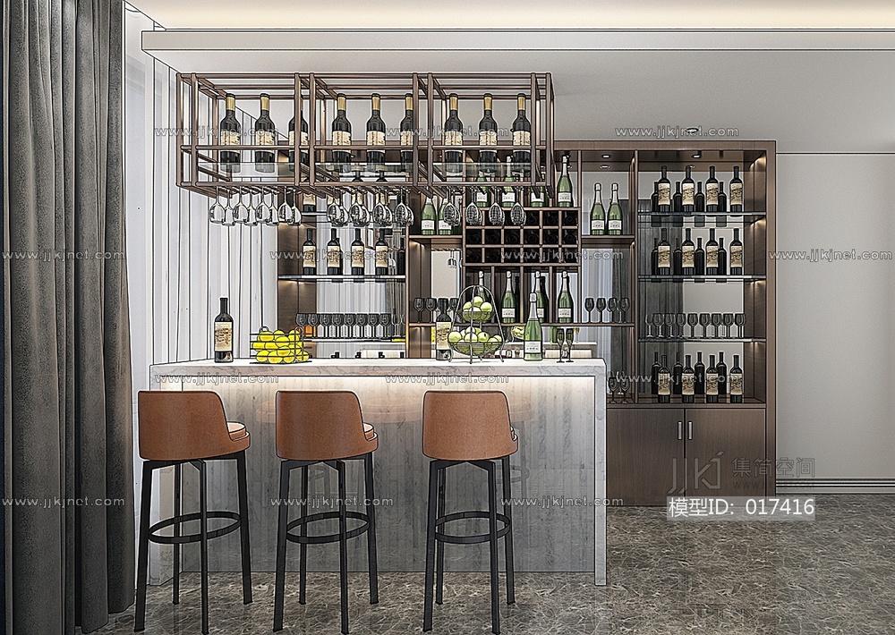 H14-0118现代吧台吧椅酒柜酒架 3d模型下载 [模型ID:17416]
