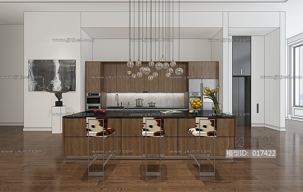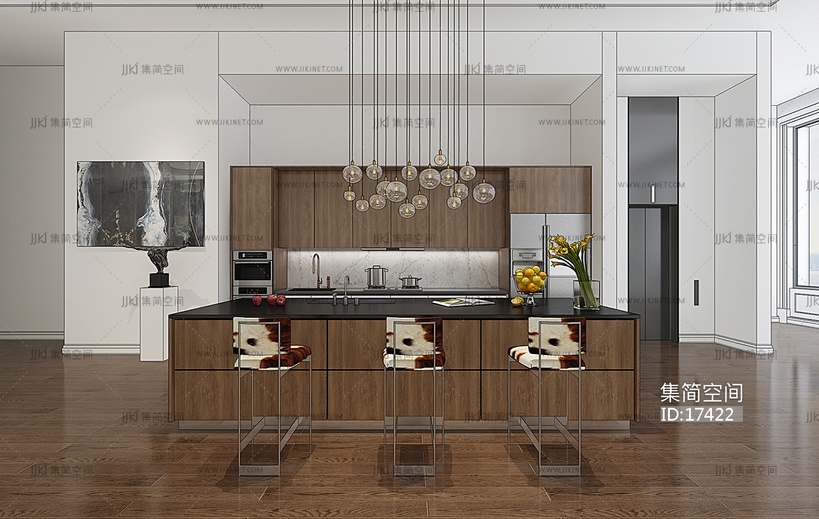 H20-0118现代吧台吧椅橱柜组合 3d模型下载 [模型ID:17422]