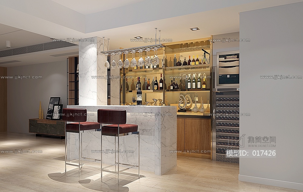 H24-0118现代吧台吧椅酒柜酒架 3d模型下载 [模型ID:17426]
