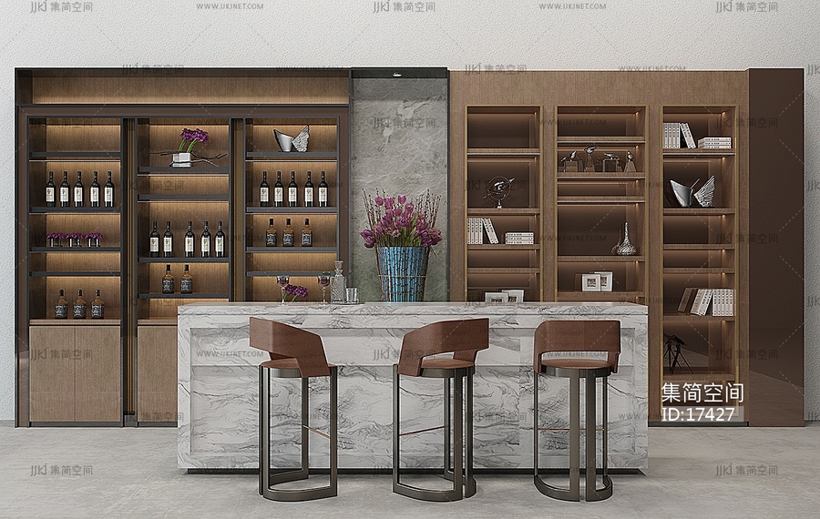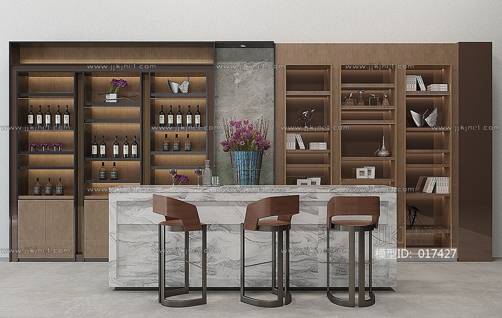 H25-0118现代吧台吧椅酒柜 3d模型下载 [模型ID:17427]