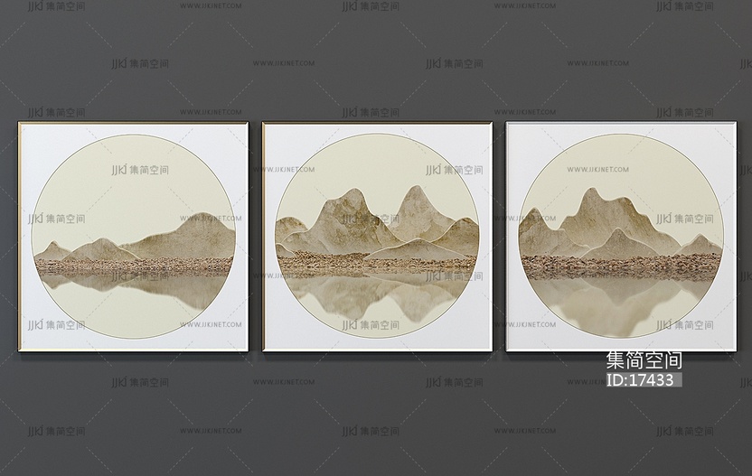 H02-0109[中式] 新中式山水挂画 3d模型下载 [模型ID:17433]