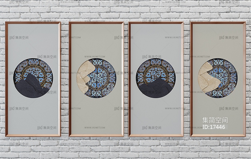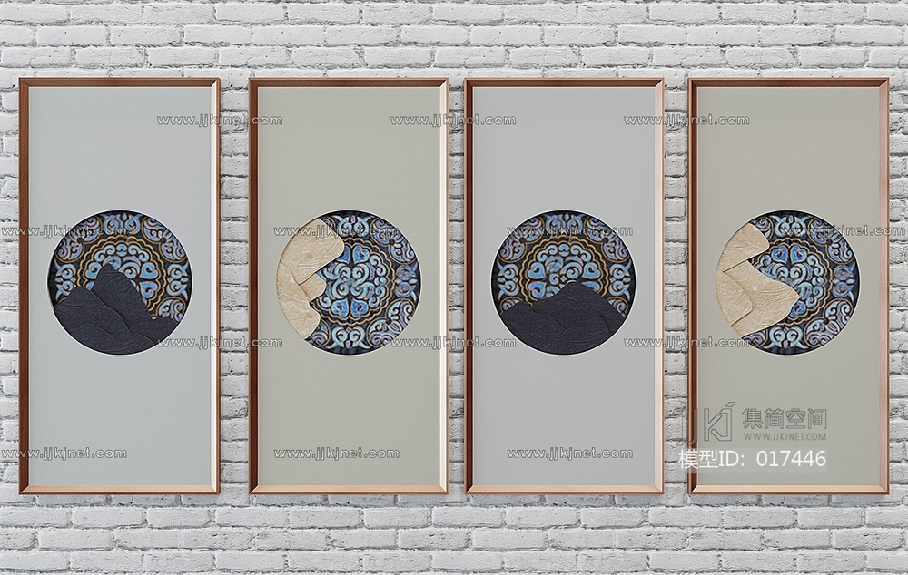 H18-0109[中式] 新中式立体挂画组合 3d模型下载 [模型ID:17446]