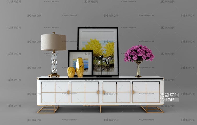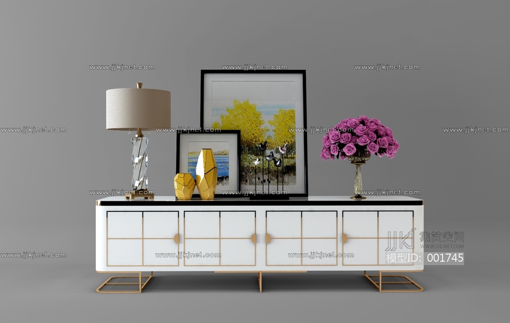 06现代电视柜装饰柜摆件装饰画组合 3d模型下载 [模型ID:1745]