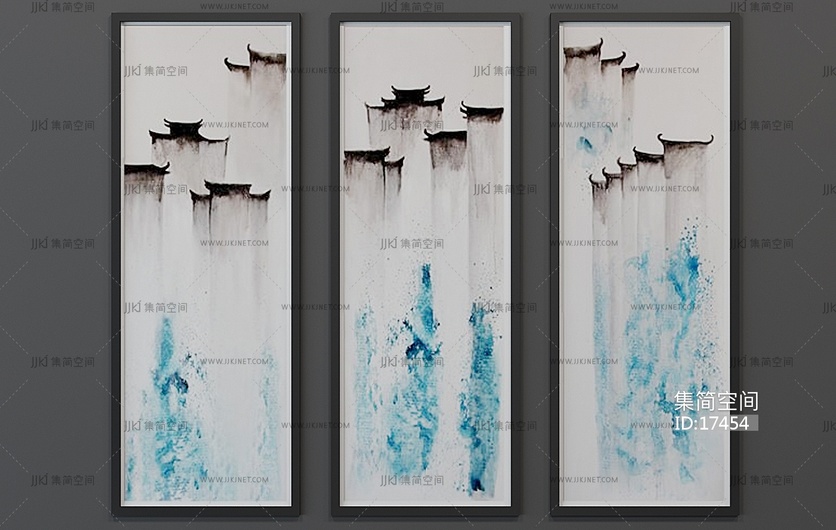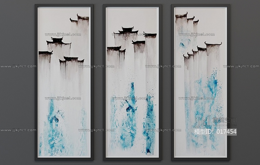 H28-0109[中式] 新中式挂画组合 3d模型下载 [模型ID:17454]