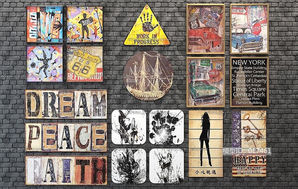 H44-0109工业风装饰画组合 3d模型下载 [模型ID:17461]