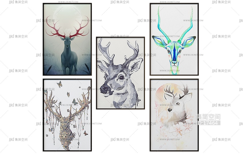 H47-0109北欧现代挂画组合 3d模型下载 [模型ID:17464]