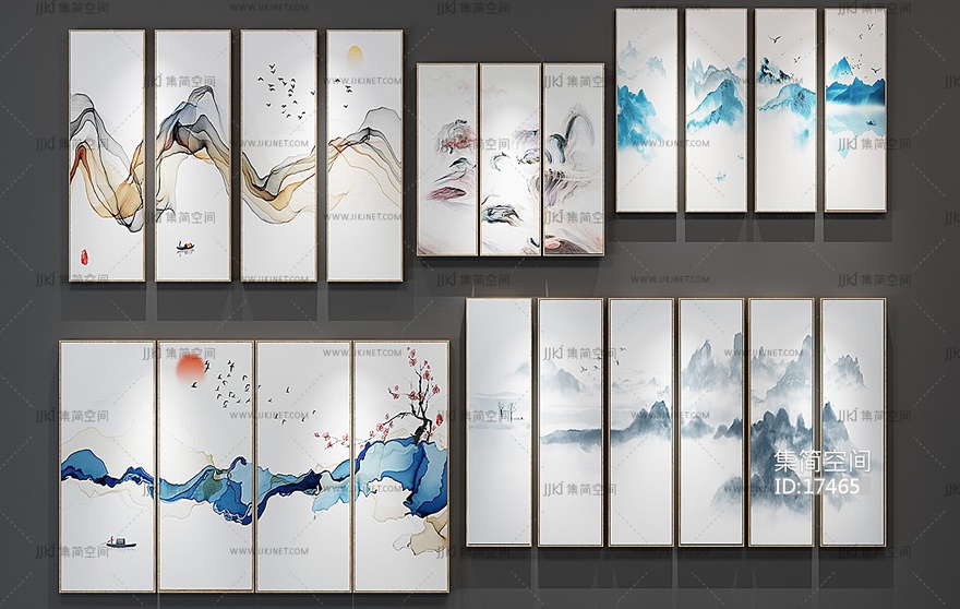 H48-0109新中式挂画组合 3d模型下载 [模型ID:17465]