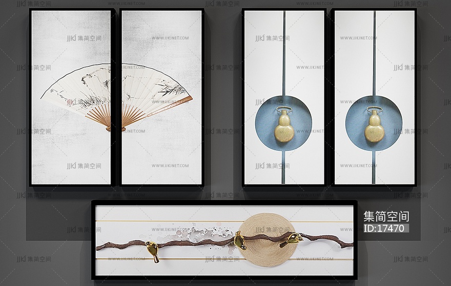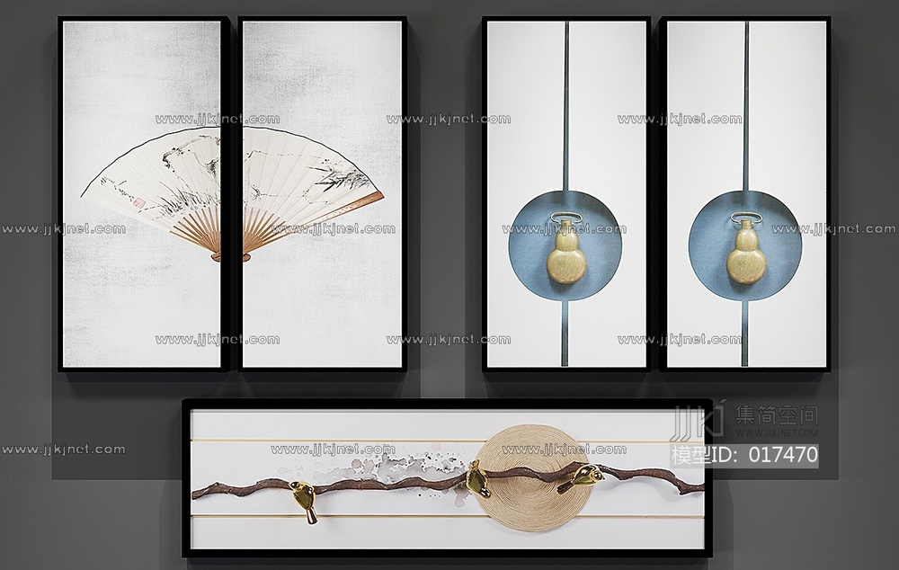 H53-0109新中式装饰画组合 3d模型下载 [模型ID:17470]