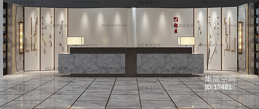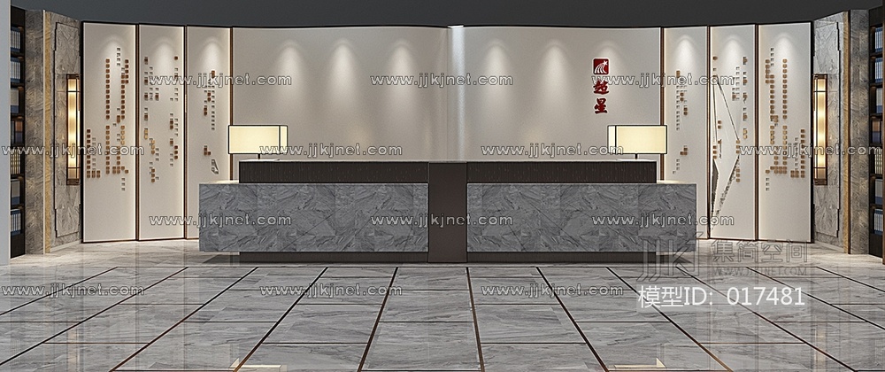 H03-0114新中式接待台前台接待 3d模型下载 [模型ID:17481]