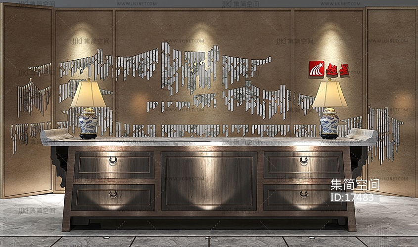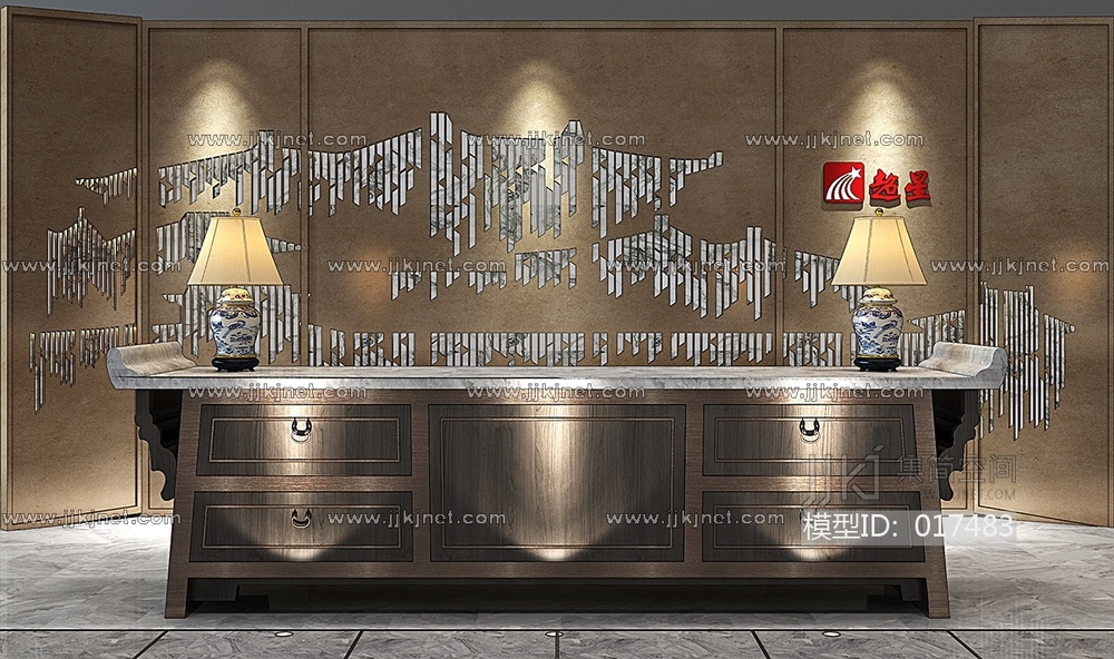 H05-0114新中式接待台服务台青花瓷台灯 3d模型下载 [模型ID:17483]