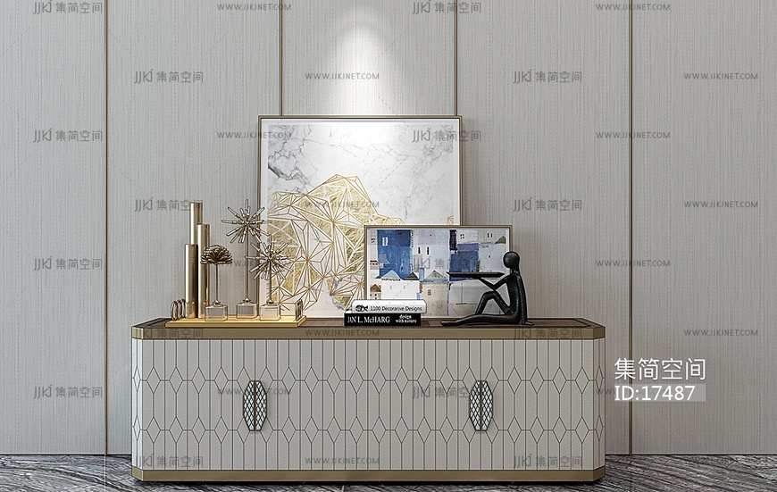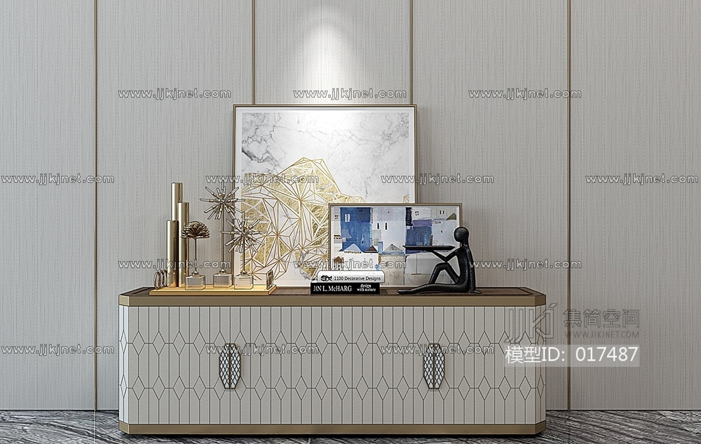 H08-0114现代简欧轻奢装饰柜玄关柜电视柜饰品摆件 3d模型下载 [模型ID:17487]