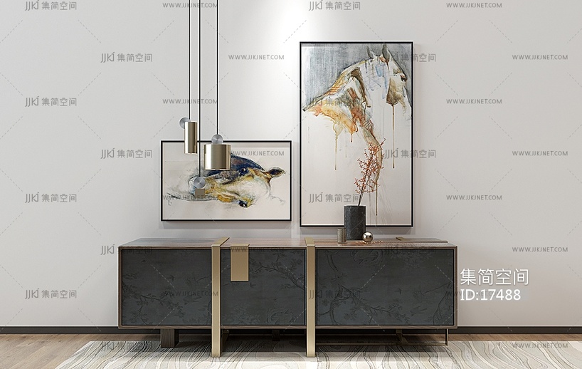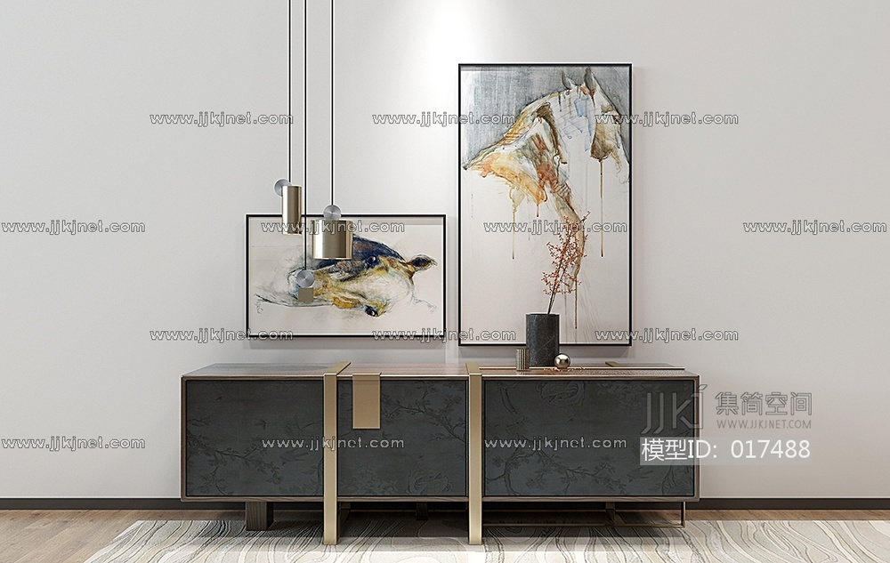 H09-0114新中式现代电视柜花瓶 3d模型下载 [模型ID:17488]