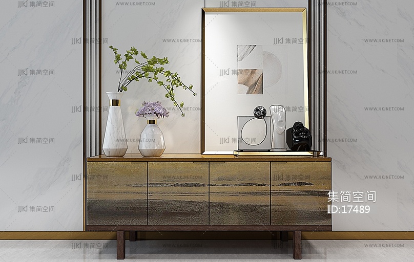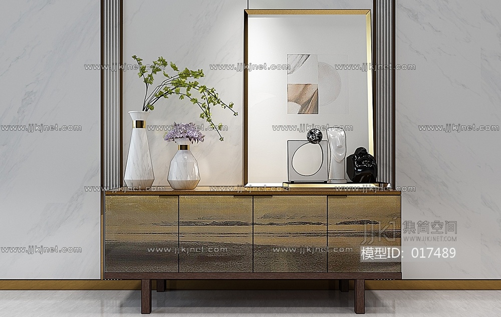 H11-0114现代新中式装饰柜边柜电视柜花瓶摆件 3d模型下载 [模型ID:17489]