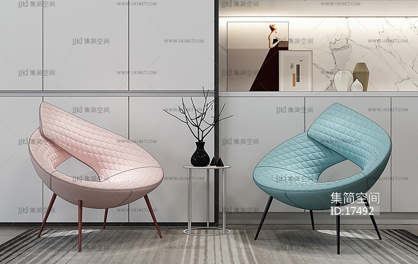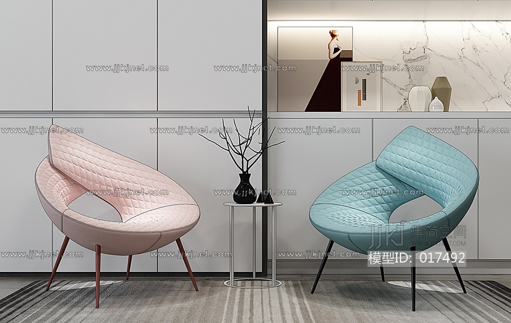 H15-0114现代椅子休闲椅边几组合 3d模型下载 [模型ID:17492]