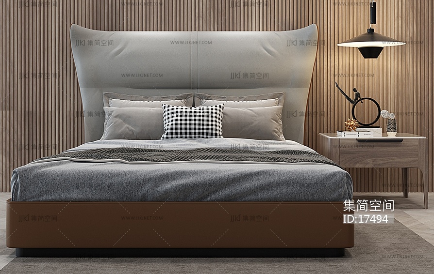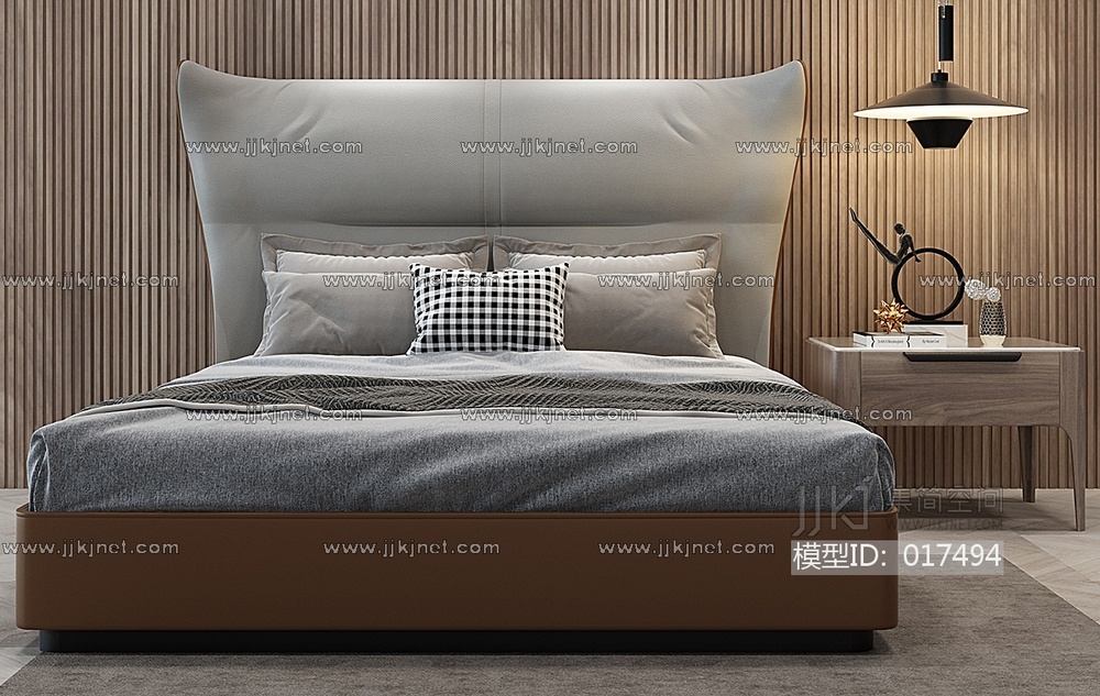 16-现代双人床_现代双人床,高靠背床头,3D模型vrrr3d模型下载