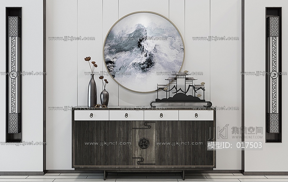 H25-0114新中式装饰柜玄关柜花瓶饰品摆件壁灯 3d模型下载 [模型ID:17503]
