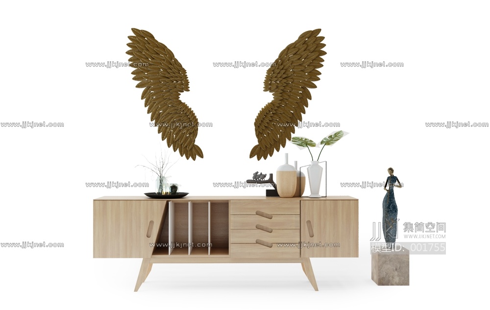 16 现代电视柜装饰柜翅膀挂件雕塑摆件组合 3d模型下载 [模型ID:1755]