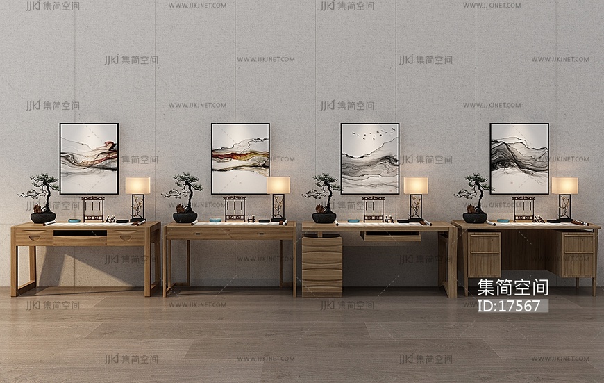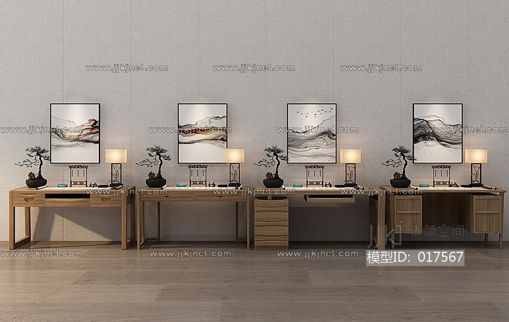 Z04-0107新中式书桌写字台 3d模型下载 [模型ID:17567]