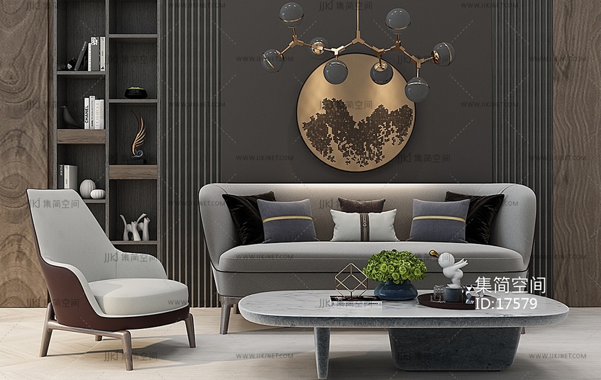 Z16-0107现代轻奢沙发茶几立体画组合 3d模型下载 [模型ID:17579]