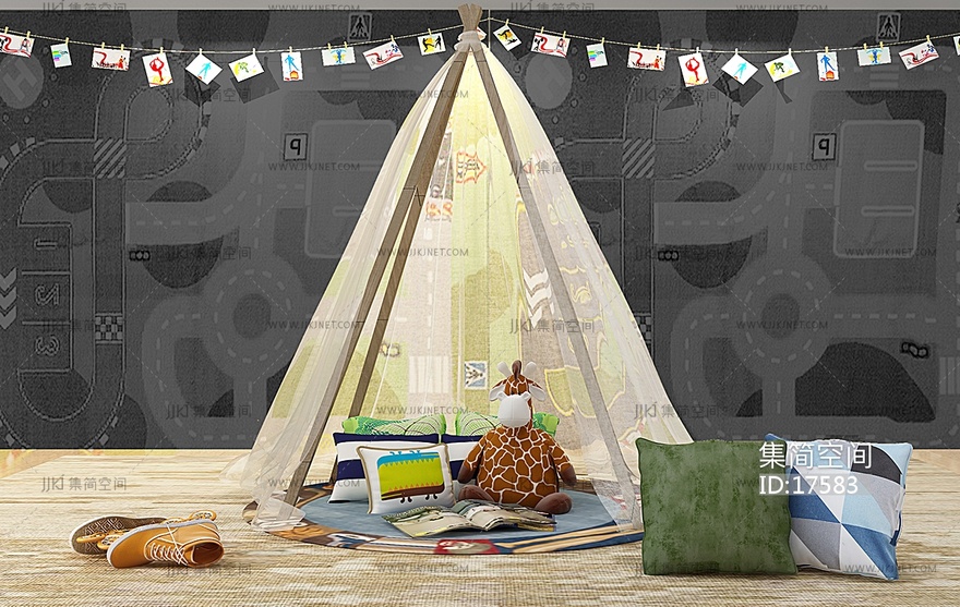 Z21-0107现代儿童房摆件帐篷 3d模型下载 [模型ID:17583]