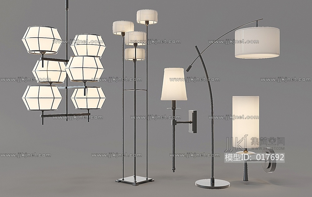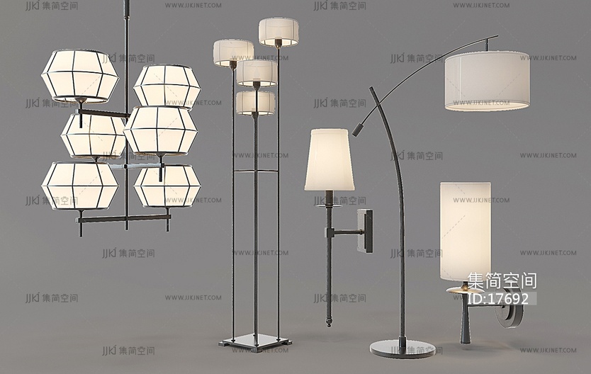 Z14-0122新中式落地灯吊灯壁灯组合 3d模型下载 [模型ID:17692]