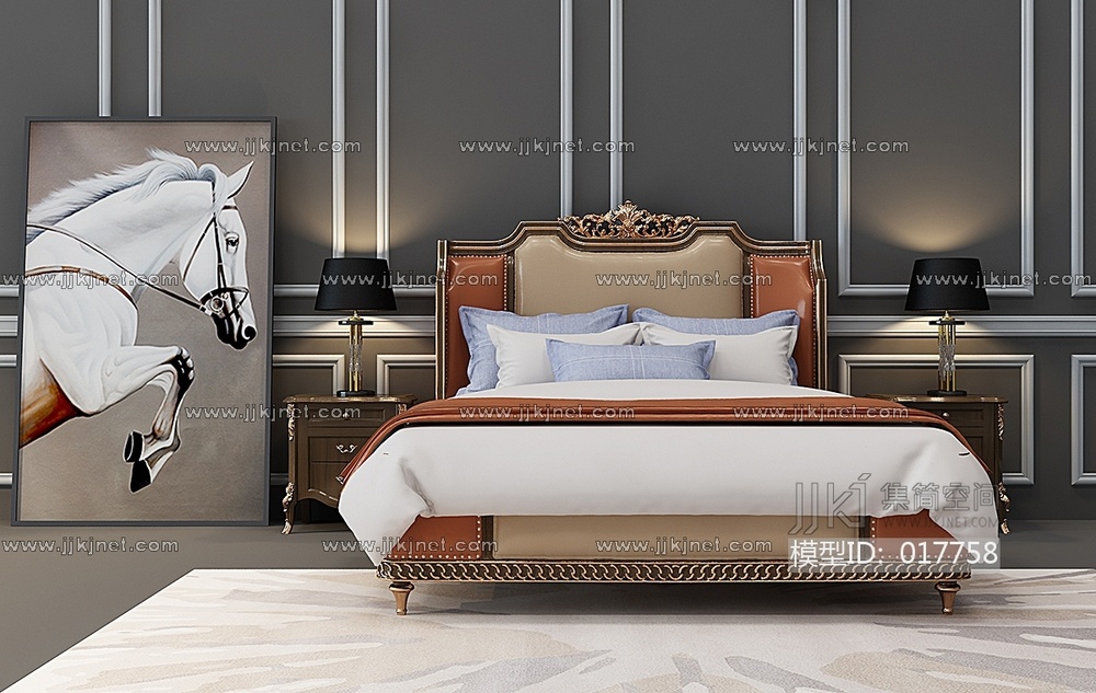 欧式古典床组合 双人床台灯3D模型3d模型下载