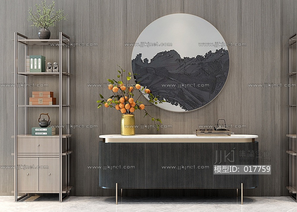 Z04-0112新中式餐边柜玄关柜书架花瓶摆件 3d模型下载 [模型ID:17759]