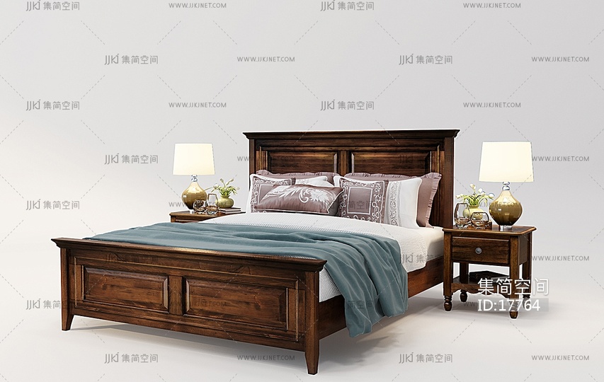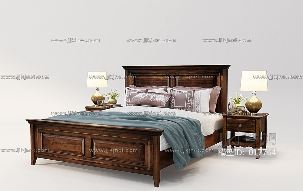 欧式古典床组合 双人床台灯3D模型3d模型下载
