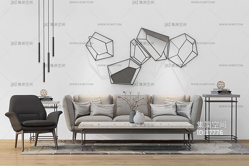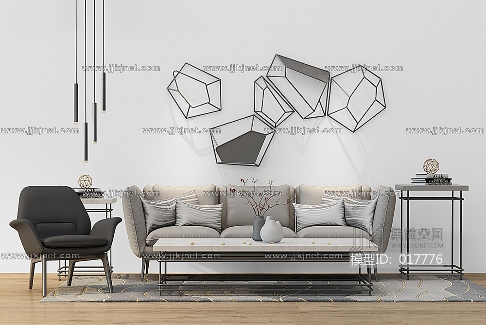 Z22-0112北欧现代沙发茶几铁艺挂饰 3d模型下载 [模型ID:17776]
