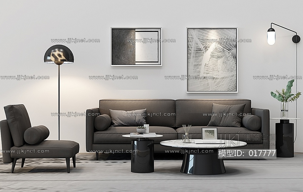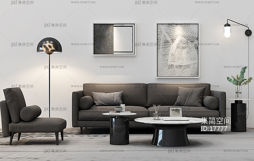 Z23-0112现代沙发茶几边几组合 3d模型下载 [模型ID:17777]