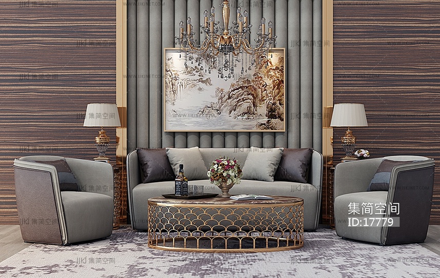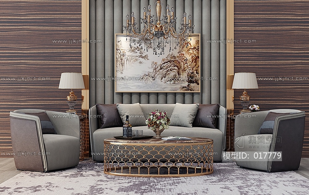 Z25-0112简欧式现代轻奢沙发茶几台灯吊灯 3d模型下载 [模型ID:17779]