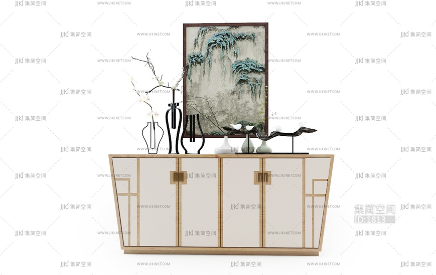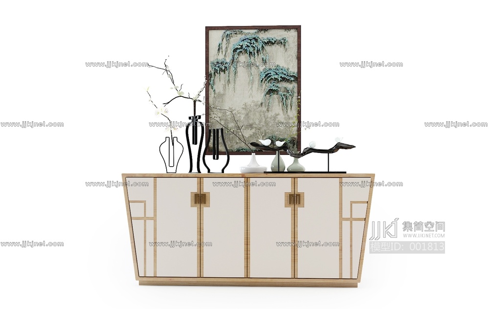 158-9-08-新中式玄关柜 3d模型下载 [模型ID:1813]
