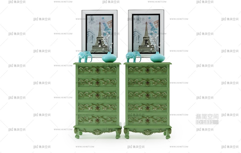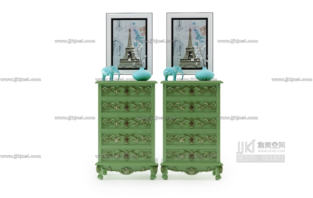 法式古典雕花 端景台 端景柜3D模型3d模型下载