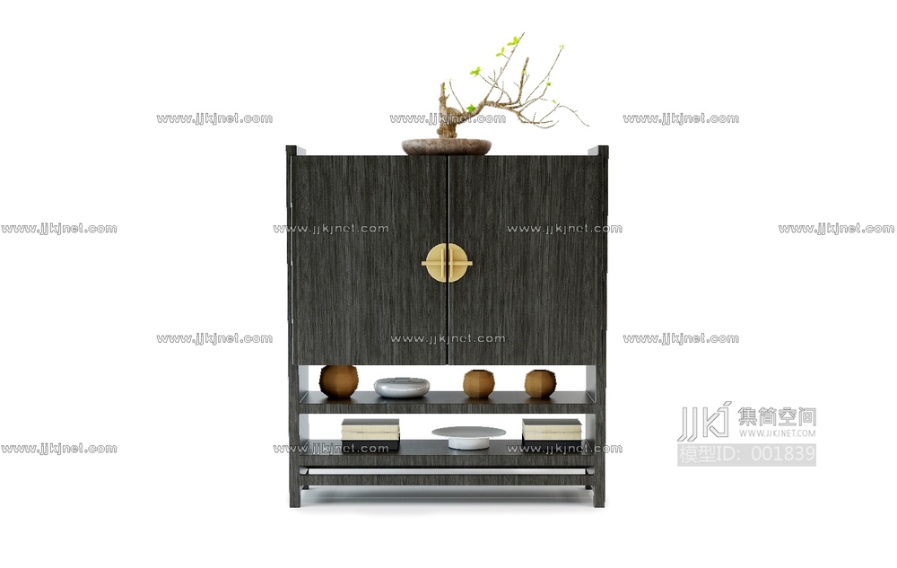 067-7-14中式边柜及屏风 3d模型下载 [模型ID:1839]