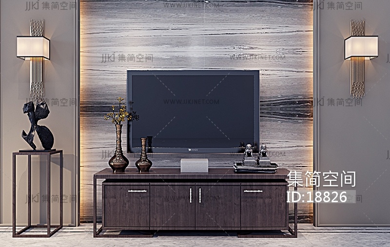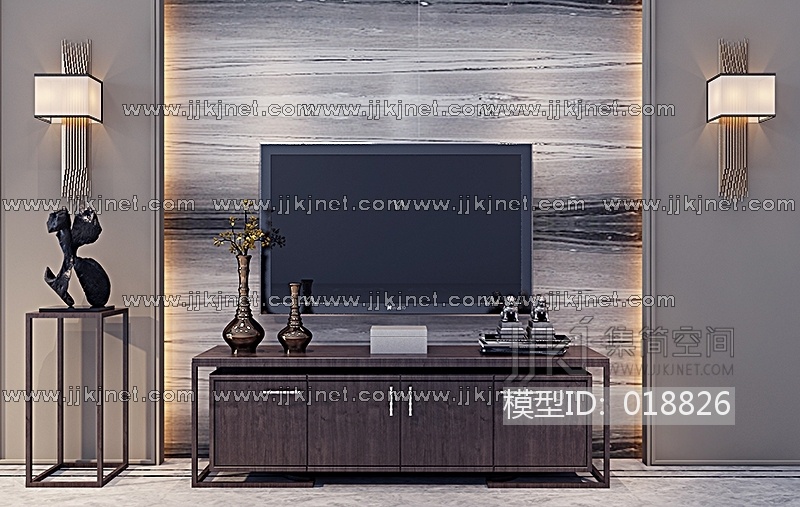 Z05-0117新中式电视柜边几壁灯花架摆件 3d模型下载 [模型ID:18826]