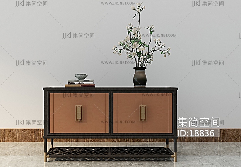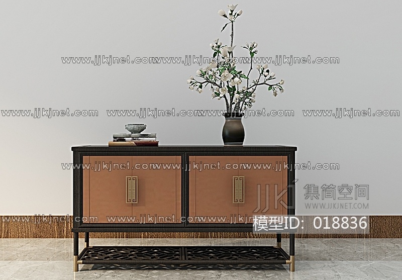Z07-0118新中式玄关柜餐边柜装饰柜花瓶 3d模型下载 [模型ID:18836]