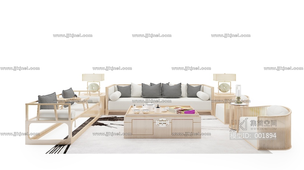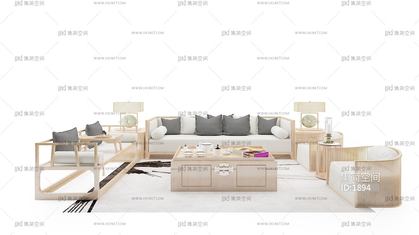 011中式沙发组合 3d模型下载 [模型ID:1894]