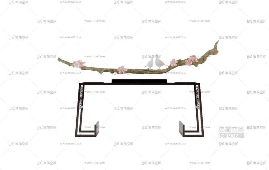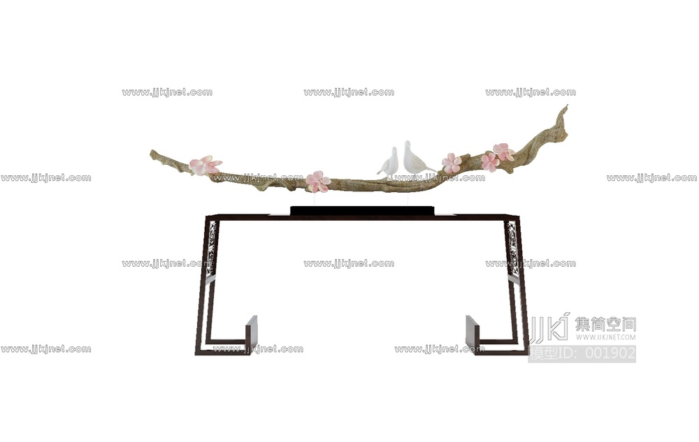 新中式条案 端景台,格栅3d模型 3d模型下载