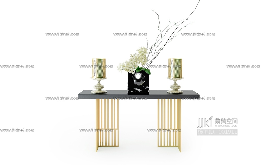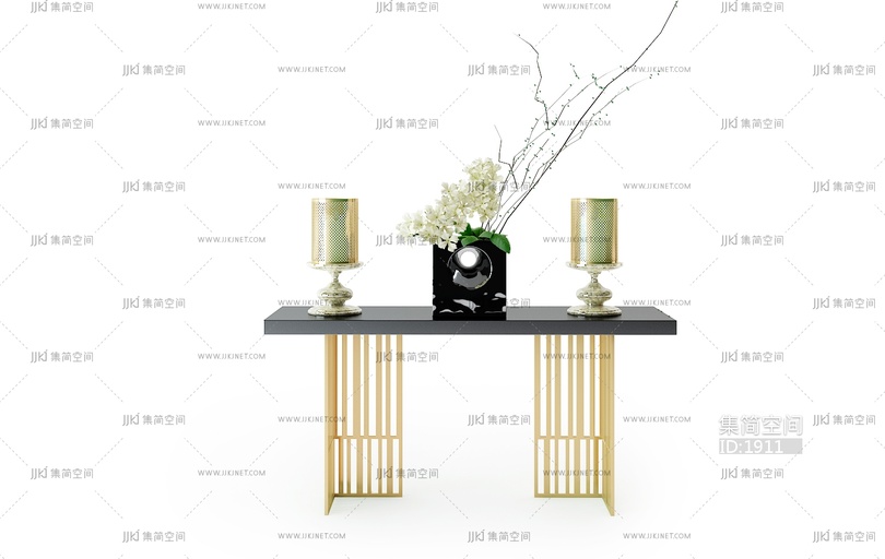 新中式条案 端景台,格栅3d模型 3d模型下载