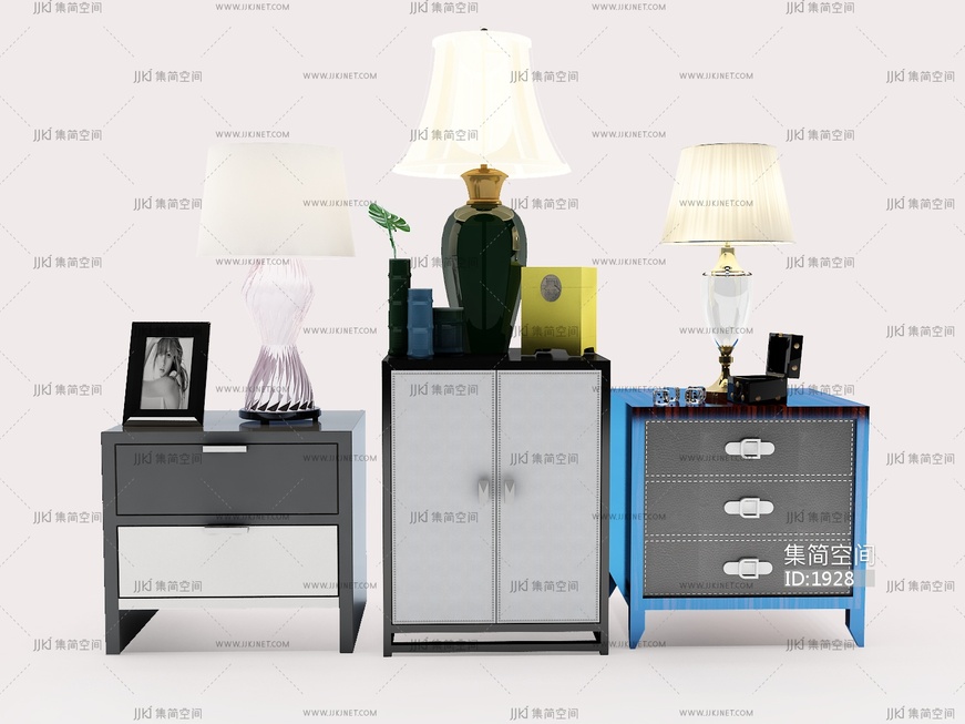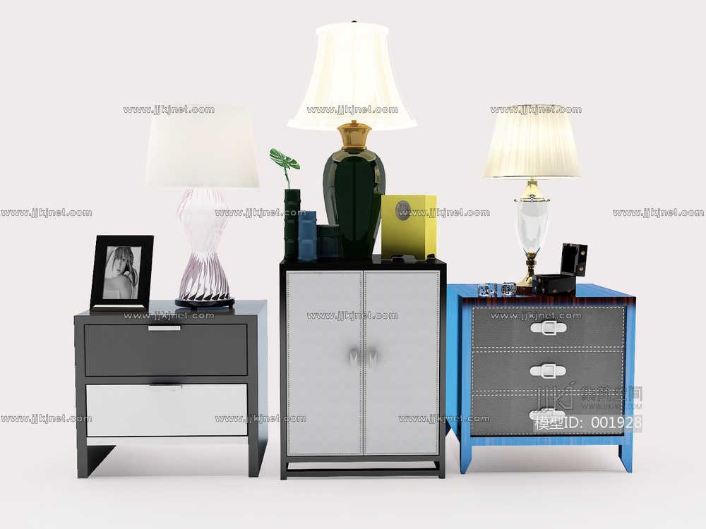 后现代台灯花瓶花卉装饰画组合3d模型下载