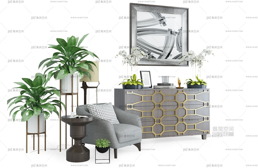 美式玄关柜摆台装饰画3D模型下载3d模型下载