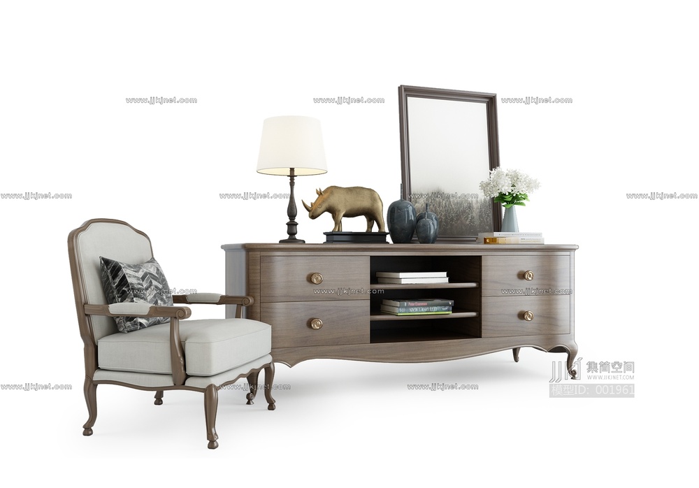 美式玄关柜摆台装饰画3D模型下载3d模型下载