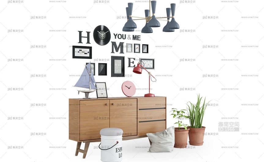 美式玄关柜摆台装饰画3D模型下载3d模型下载