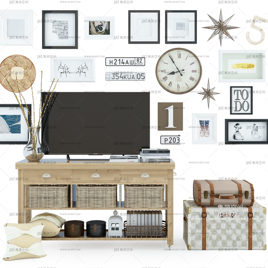 美式玄关柜摆台装饰画3D模型下载3d模型下载